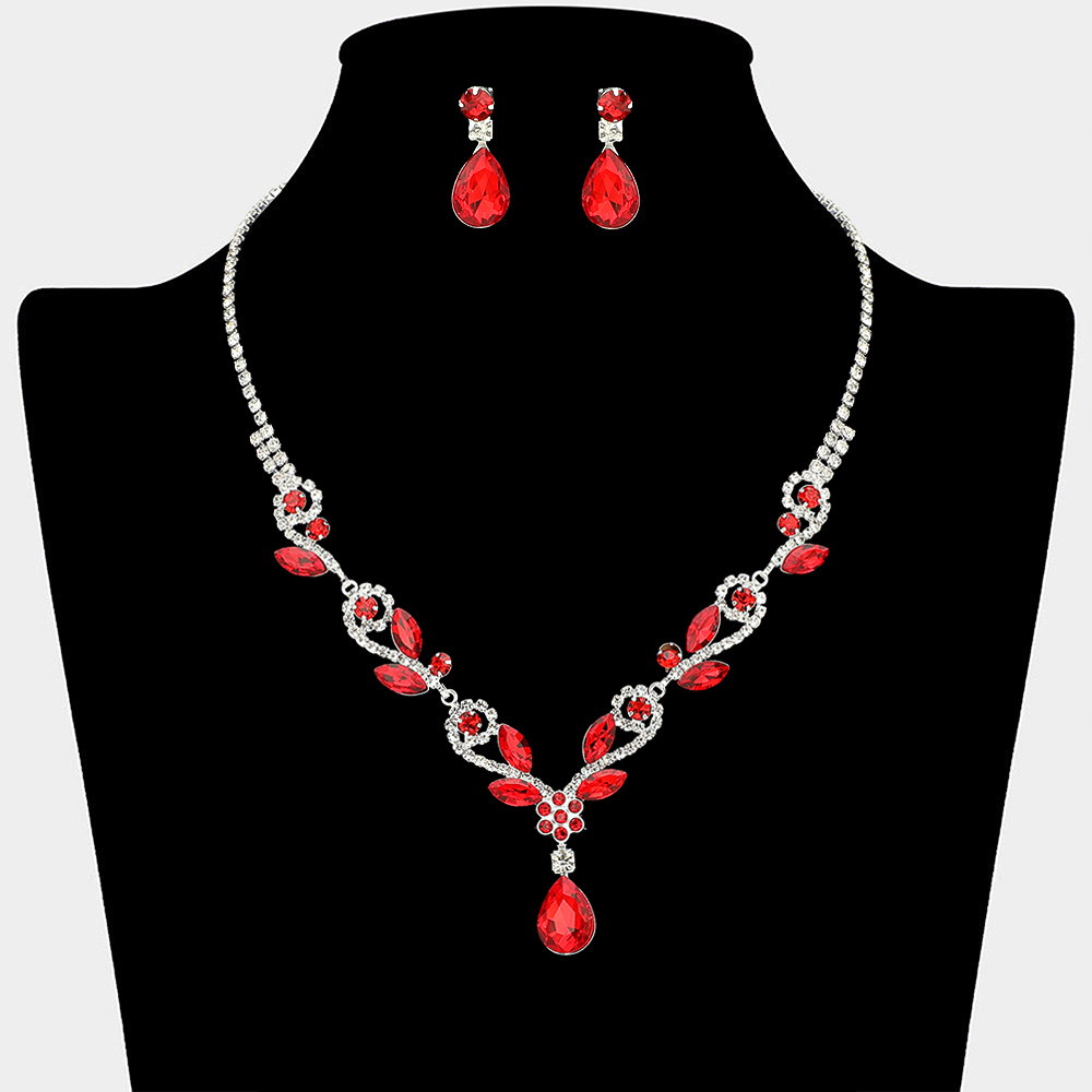 • This elegant necklace and matching earring set features a graceful teardrop design with layered crystal details that highlight the neckline beautifully. Ideal for weddings, formal events, proms, and evening occasions, it delivers timeless elegance and eye-catching sparkle for special celebrations.