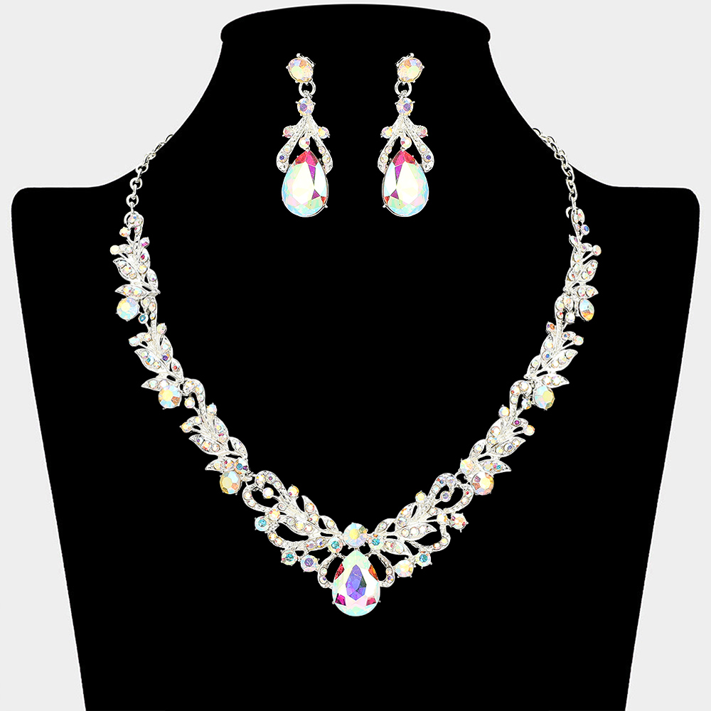 • Elevate special occasion styling with this elegant necklace and earring set designed with graceful teardrop accents and detailed patterns. Ideal for weddings, formal events, proms, and evening wear, this coordinated set adds refined sparkle and timeless sophistication to any dress or gown.