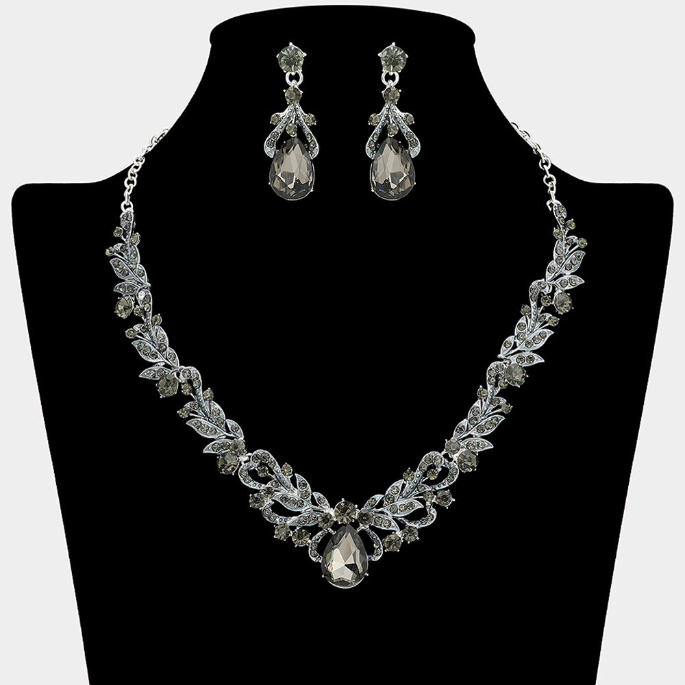 Details • Necklace Size : 18" + 3" L • Decor Size : 1" L • Earrings Size : 1.7" L • Elevate special occasion styling with this elegant necklace and earring set designed with graceful teardrop accents and detailed patterns. Ideal for weddings, formal events, proms, and evening wear, this coordinated set adds refined sparkle and timeless sophistication to any dress or gown.