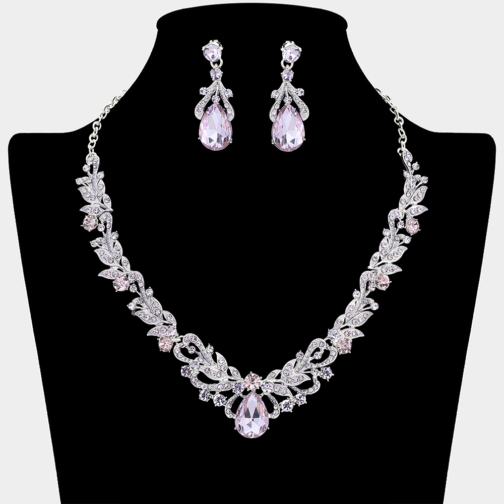 • Elevate special occasion styling with this elegant necklace and earring set designed with graceful teardrop accents and detailed patterns. Ideal for weddings, formal events, proms, and evening wear, this coordinated set adds refined sparkle and timeless sophistication to any dress or gown.