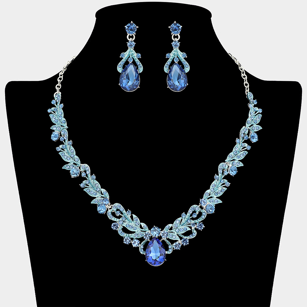 • Elevate special occasion styling with this elegant necklace and earring set designed with graceful teardrop accents and detailed patterns. Ideal for weddings, formal events, proms, and evening wear, this coordinated set adds refined sparkle and timeless sophistication to any dress or gown.