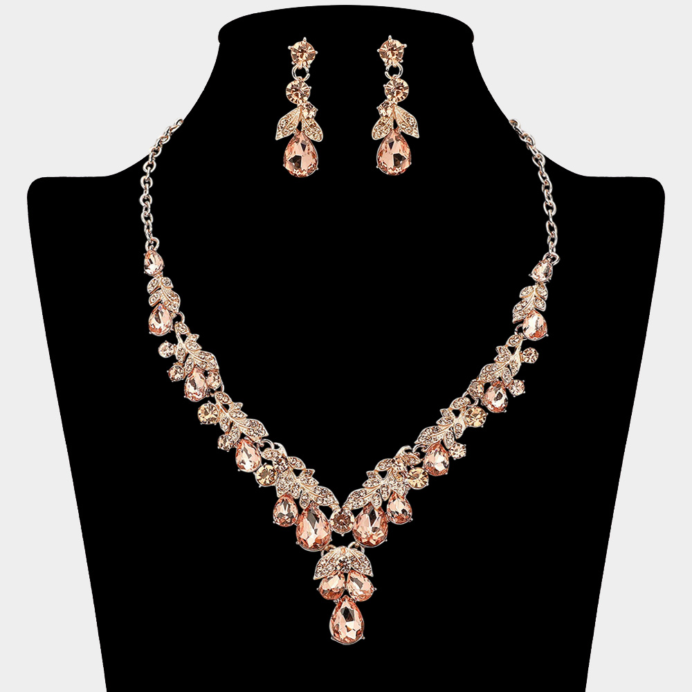 • Dazzle with sophistication in this crystal drop necklace and earring set, designed for weddings, formal events, or glamorous evenings. The intricate detailing and sparkling stones create a timeless, luxurious look that enhances any outfit with elegance and radiant charm.