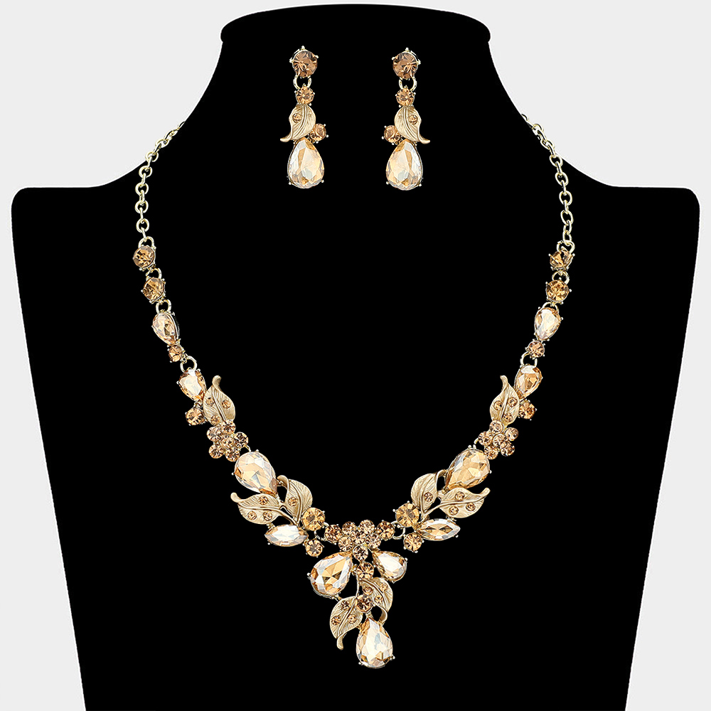 Teardrop Stone Cluster Leaf Embellished Necklace