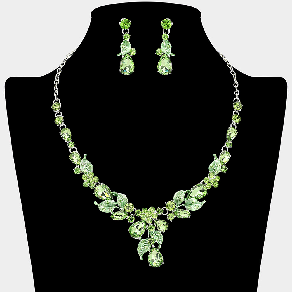Teardrop Stone Cluster Leaf Embellished Necklace