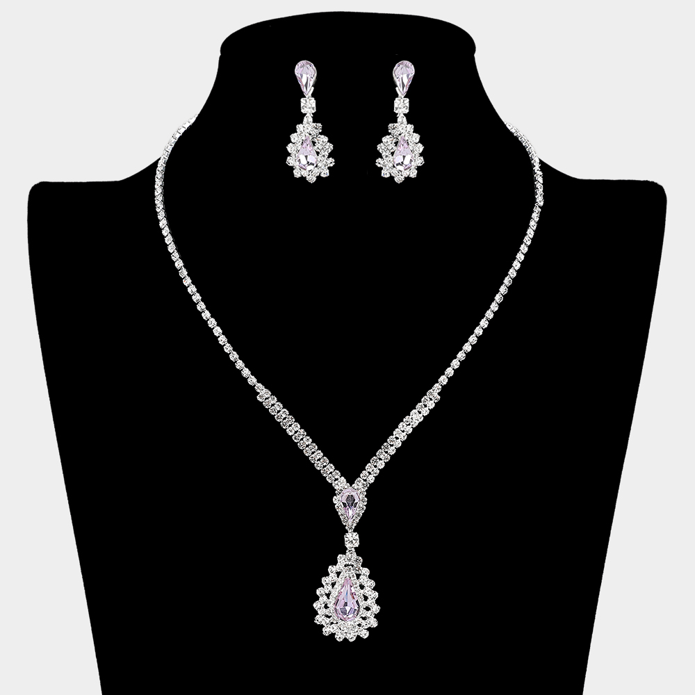 Teardrop Stone Pendant Accent Rhinestone Paved Jewelry Set