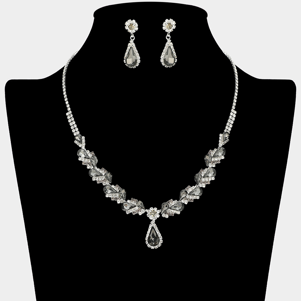 • This teardrop statement necklace and earring set features layered sparkle with elegant drop accents that frame the neckline beautifully. Designed for special occasions, formal events, and evening styling, it offers a refined coordinated look ideal for boutiques and gift-ready collections.