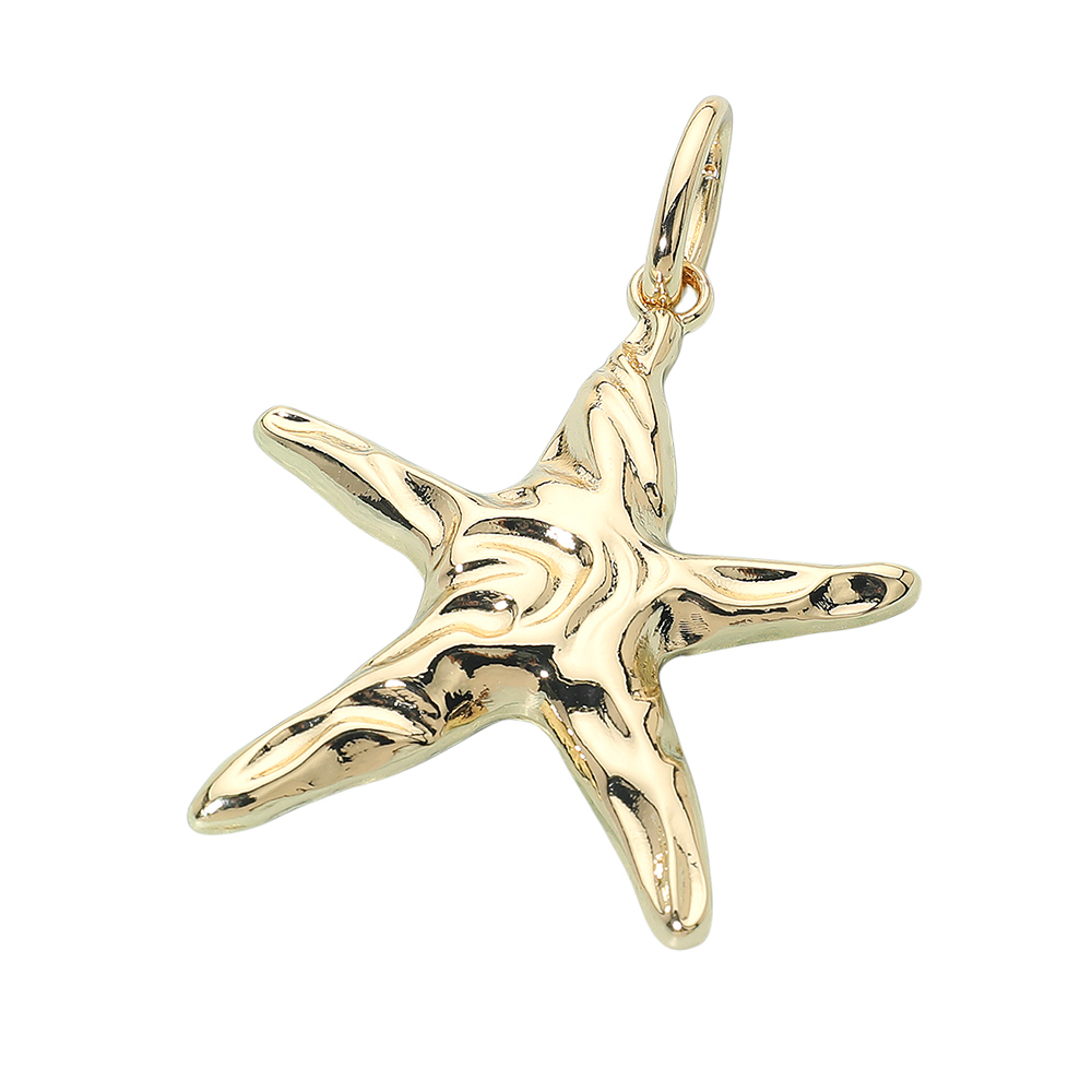 Details • Size : 2" X 2.8" • Elevate your accessory designs with this sculpted starfish charm featuring an organic, textured finish. Its fluid, wave-like detailing adds a refined coastal touch, making it perfect for customizing bracelets, necklaces, or layered charm collections. • Lead and Nickel Compliant