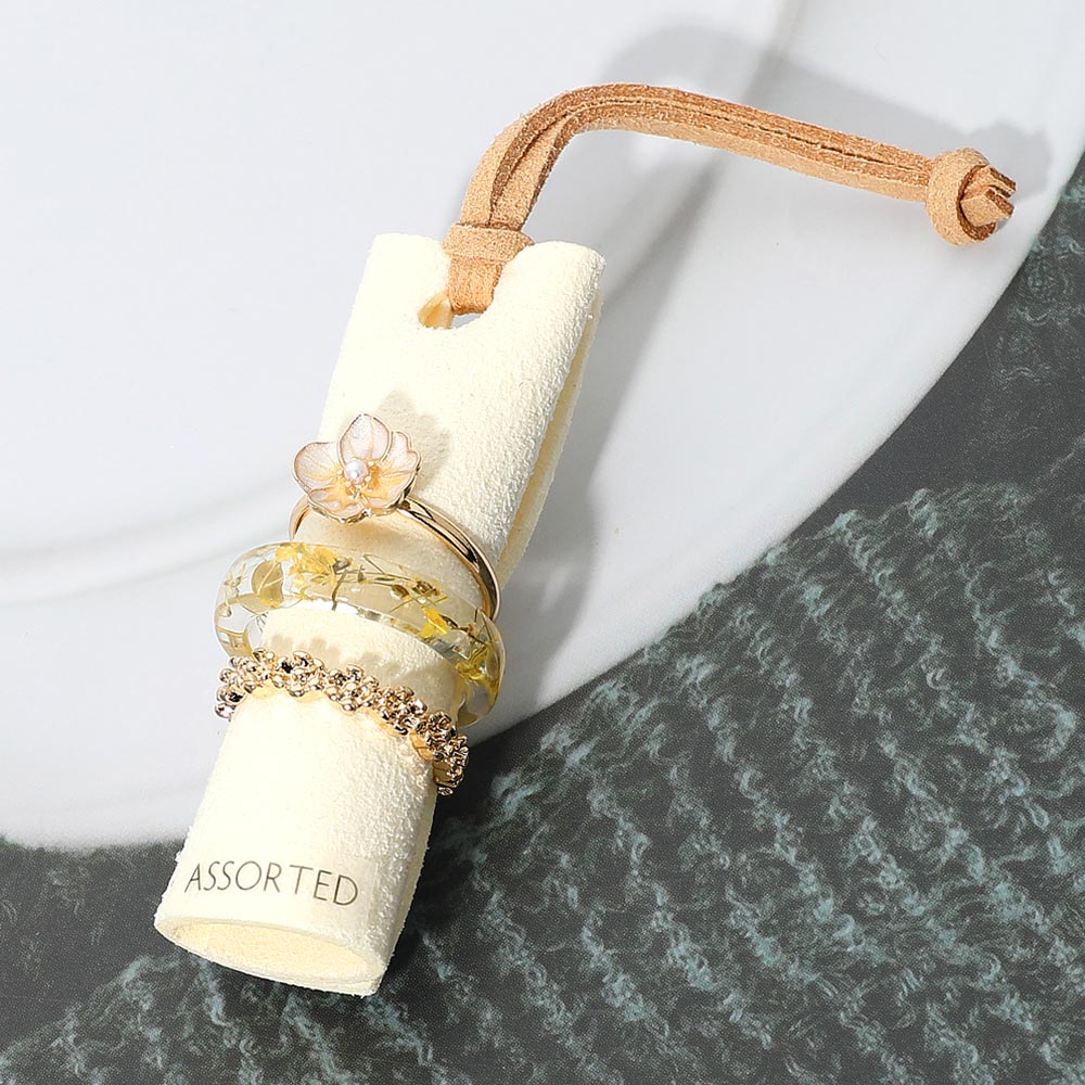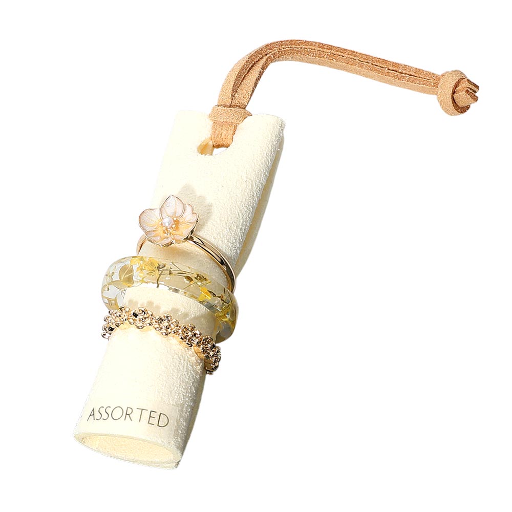 • A charming assorted ring set featuring a delicate floral ring, a clear resin band with embedded accents, and a textured stacking ring. Perfect for mixing and matching, gifting, or adding a playful, feminine touch to everyday looks with a unique blend of styles and textures.