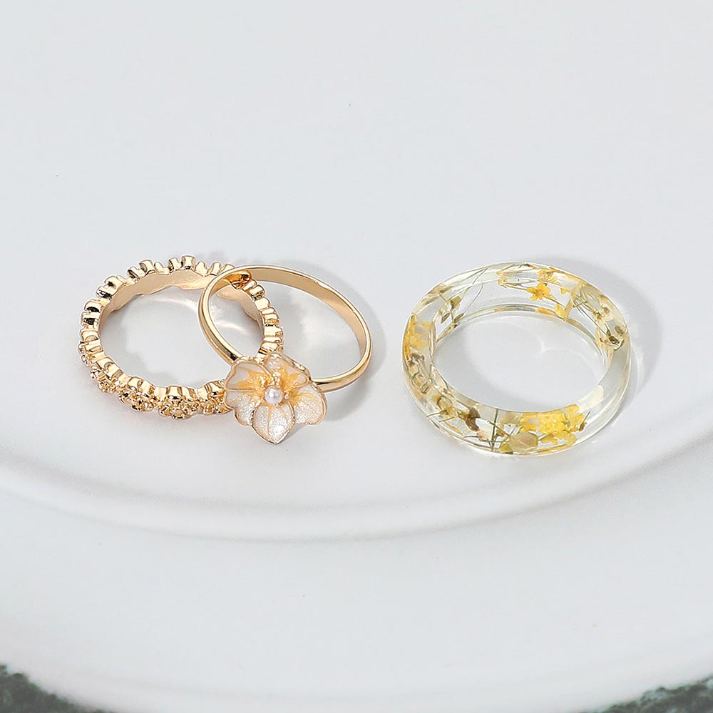 3PCS - Pearl Centered Flower Resin band Textured Stackable Ring Set 3PCS - Pearl Centered Flower Resin band Textured Stackable Ring Set 3PCS - Pearl Centered Flower Resin band Textured Stackable Ring Set 3PCS - Pearl Centered Flower Resin band Textured Stackable Ring Set