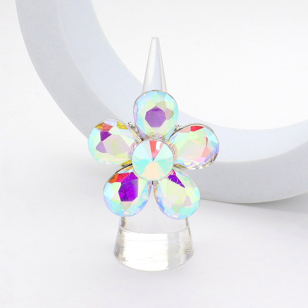 • Elegant flower-shaped statement ring featuring a dazzling faceted petal design that catches the light beautifully. Perfect for adding a bold, eye-catching accent to any outfit, this gem-inspired accessory enhances your style with its unique shape and sparkling radiance.