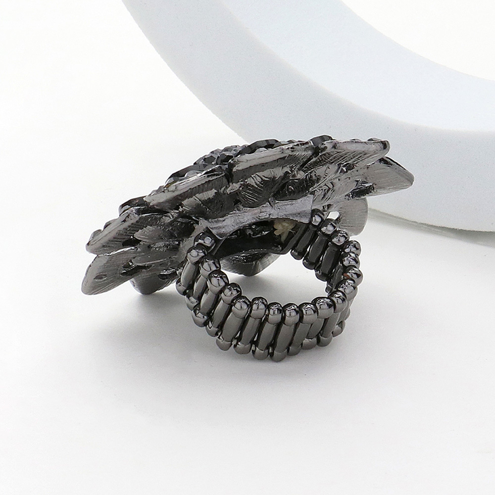 Oval Glass Stone Embellished Rhinestone Paved Flower Stretch Ring