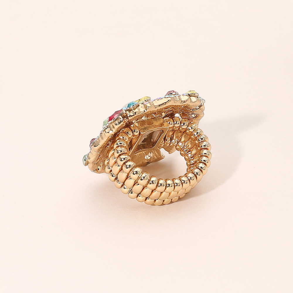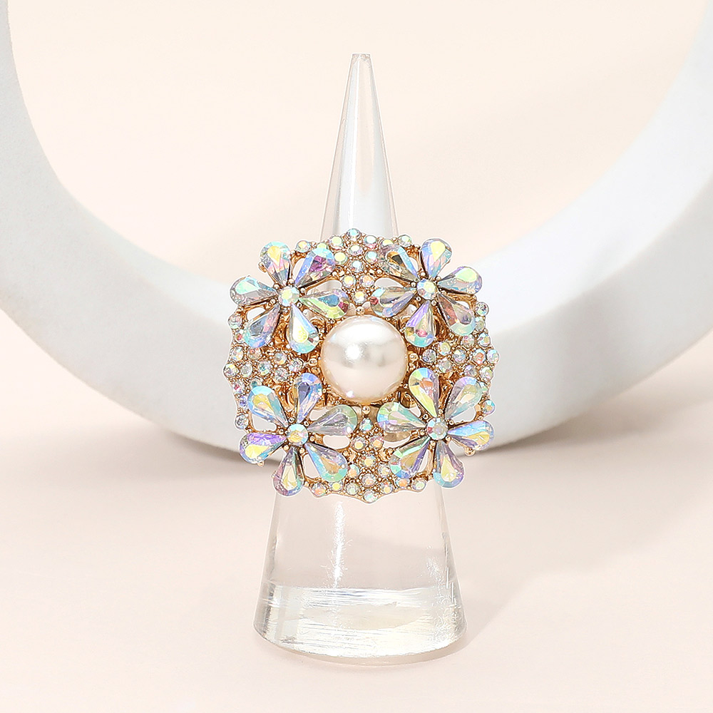Pearl Centered Rhinestone Embellished Blossom Stretch Statement Ring