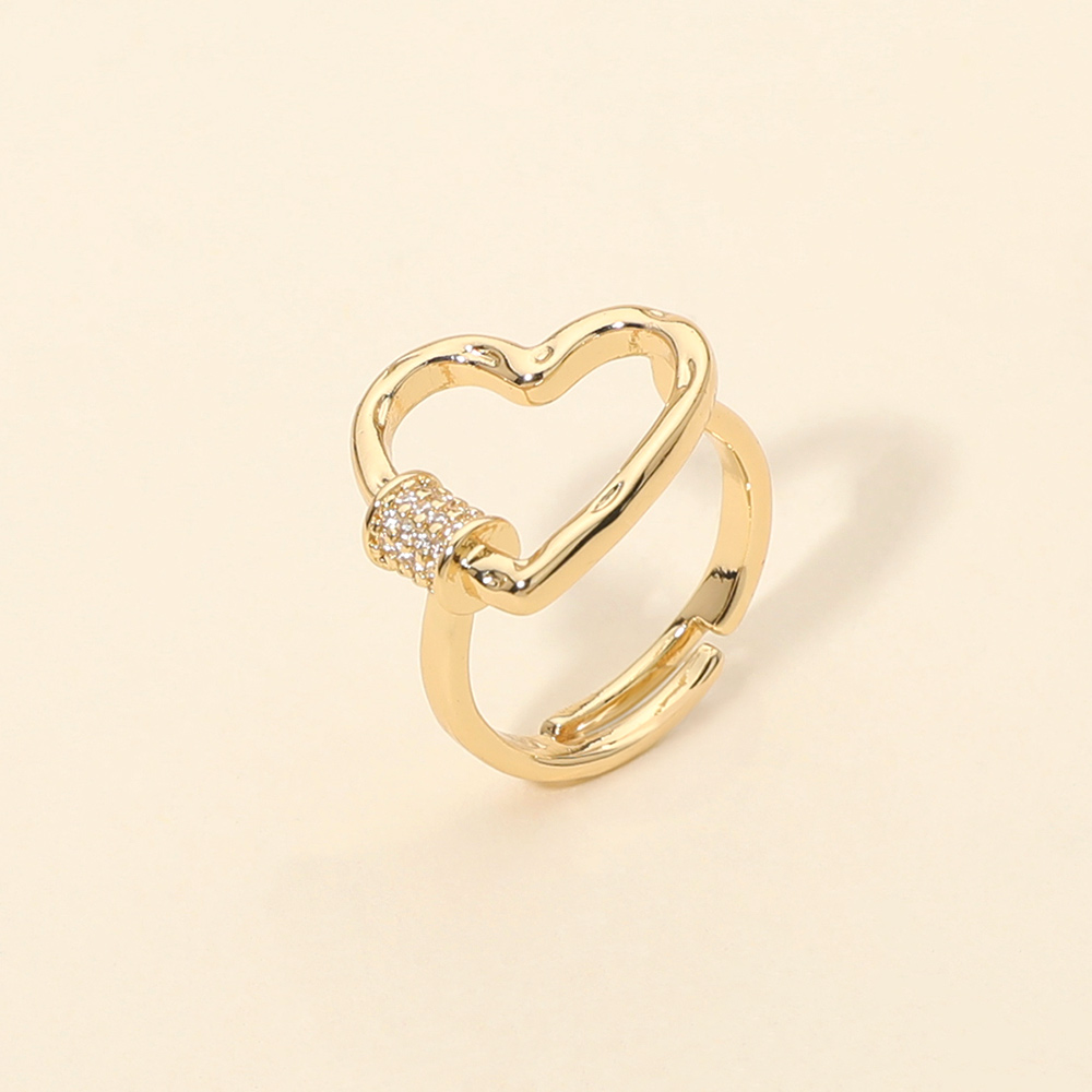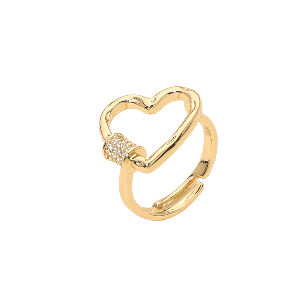 Details • Size : 0.75" H • Adjustable • Modern open ring featuring a heart-shaped design with a sparkling accent detail. The adjustable style offers a comfortable fit and easy wear, making it ideal for everyday styling, gifting, and boutique assortments focused on romantic, minimal, and trend-forward jewelry pieces. • Gold Dipped