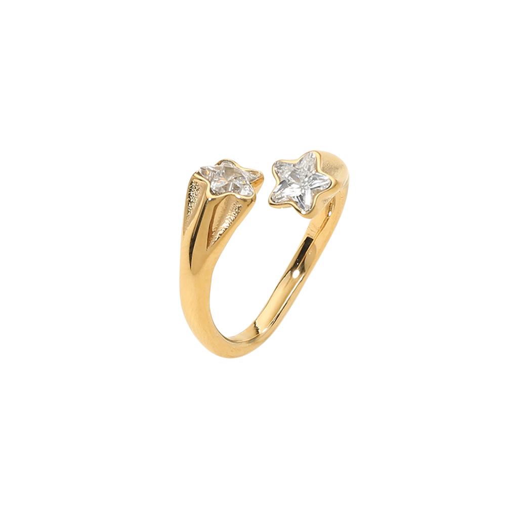 SECRET BOX_Stainless Steel Double Star Stone Tip Wrap Adjustable Ring