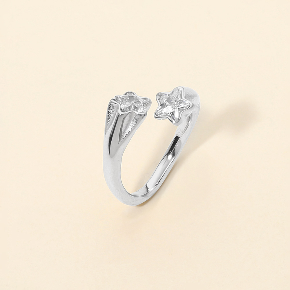 • Stylish open ring featuring two star-shaped accents for a modern celestial look. The adjustable open band offers a comfortable fit while adding subtle sparkle and dimension. A versatile fashion ring perfect for everyday wear, gifting, and boutique collections inspired by star and cosmic jewelry trends.