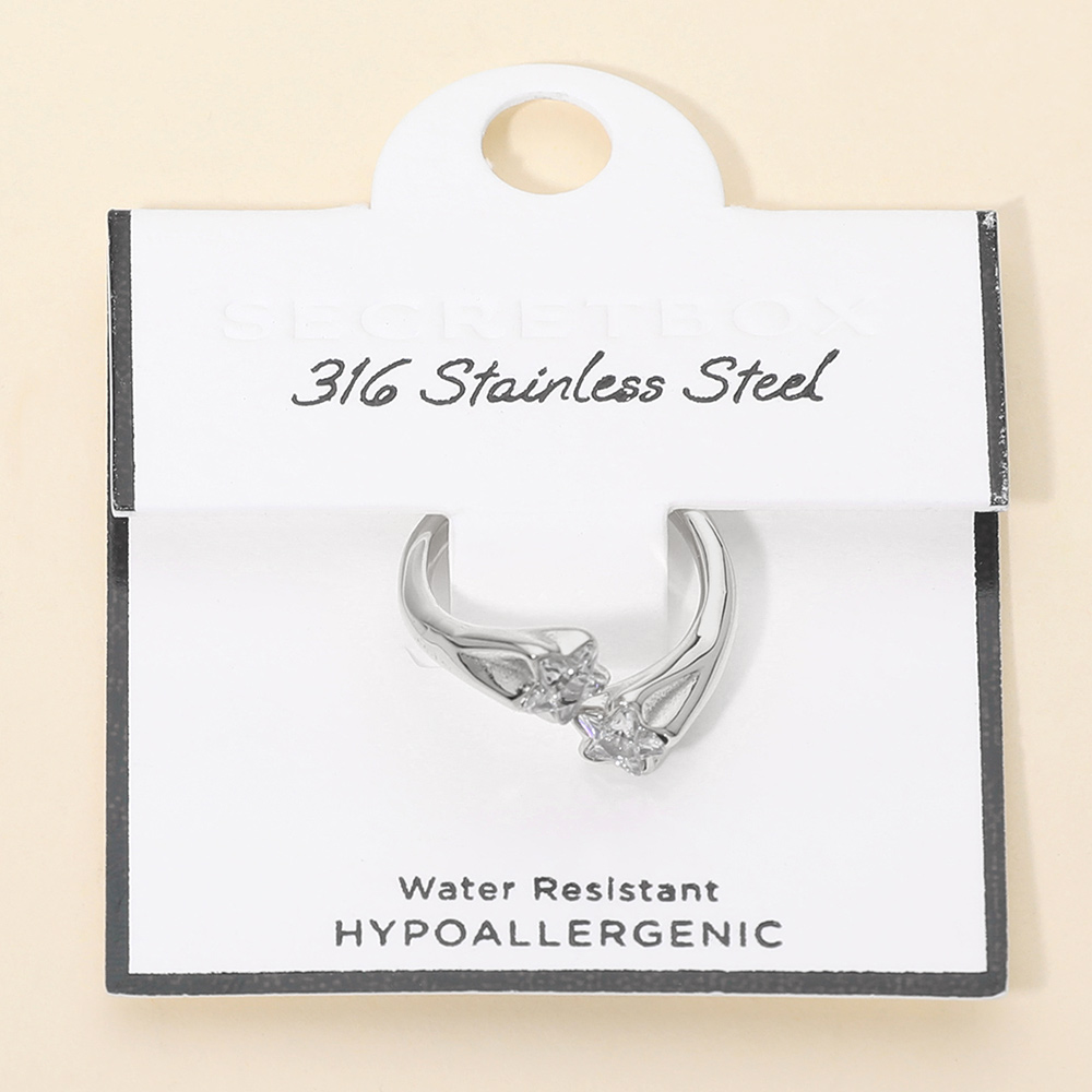 SECRET BOX_Stainless Steel Double Star Stone Tip Wrap Adjustable Ring