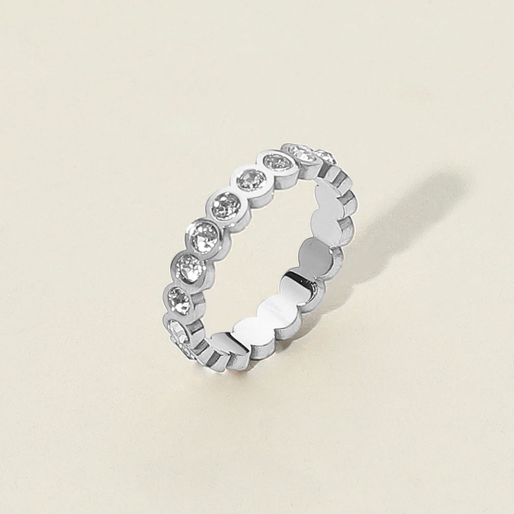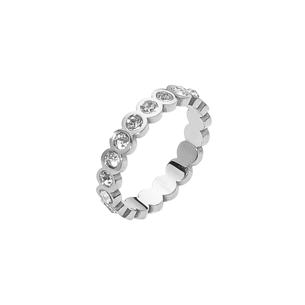 Details • Size : 0.2" H • Size 7 Only • Water Resistant • Elegant eternity band crafted from stainless steel with bezel-set crystals. Hypoallergenic and water-resistant, ideal for stacking or wearing solo for a classic, sparkling statement. • Hypoallergenic • Stainless Steel