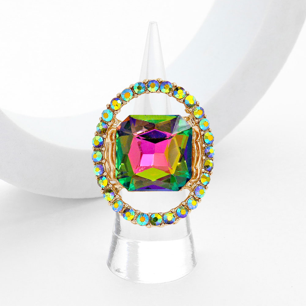 Square Stone Center Rhinestone Paved Rim Stretch Ring