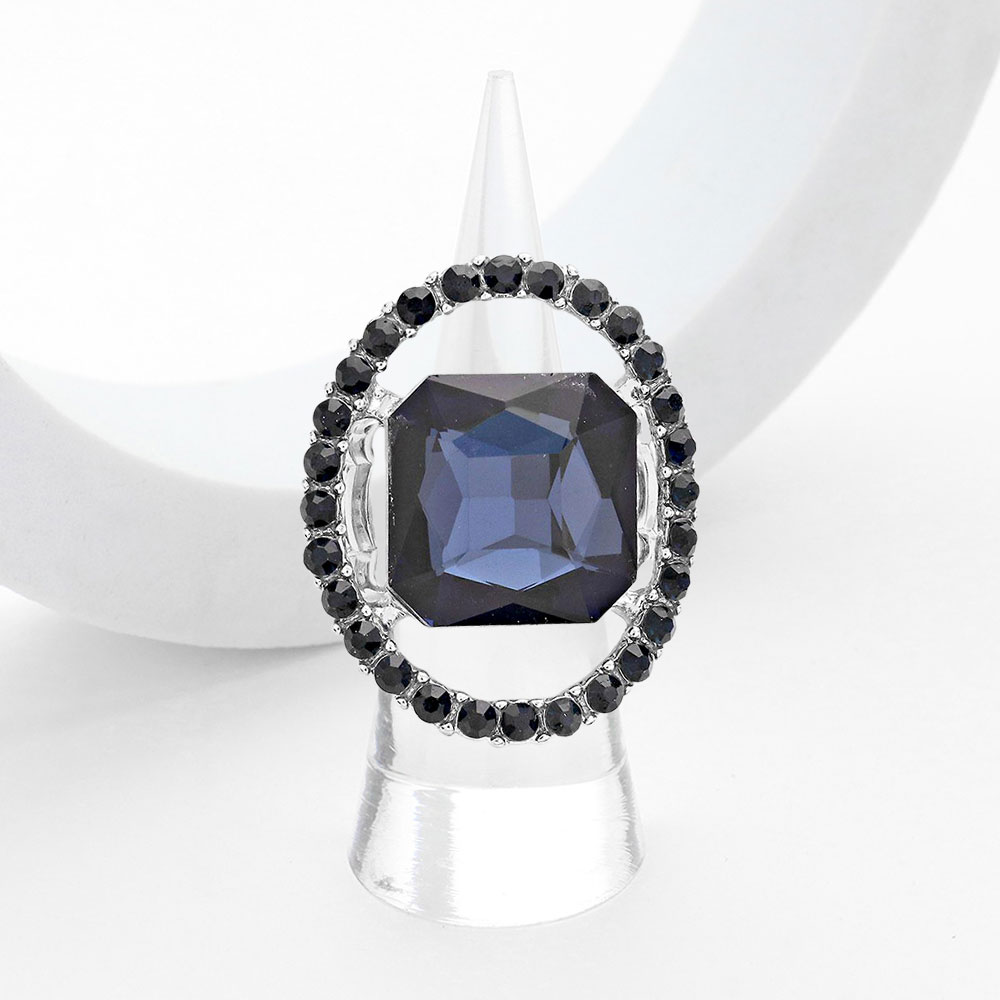 Square Stone Center Rhinestone Paved Rim Stretch Ring