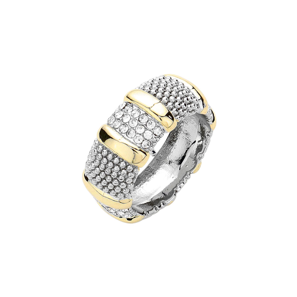 CZ Stone Paved Accented Two Tone Textured Metal Ring