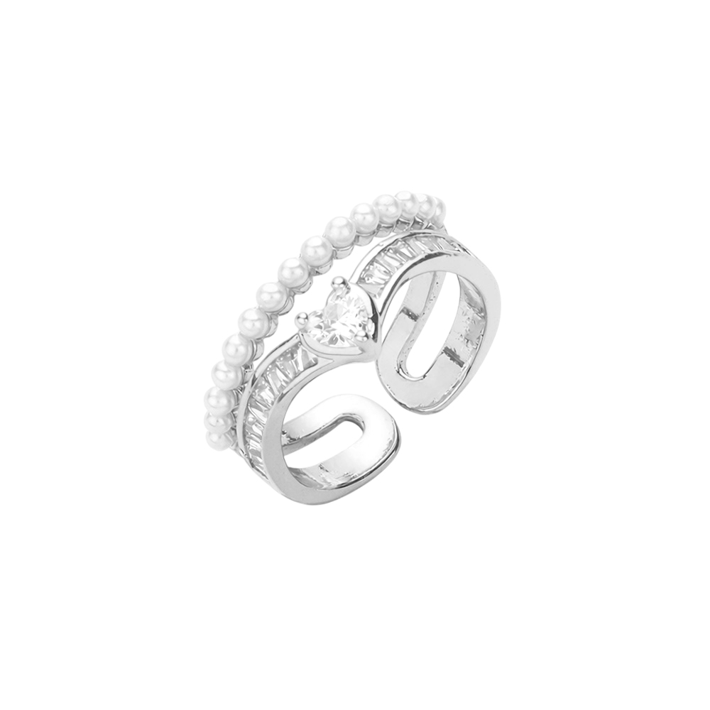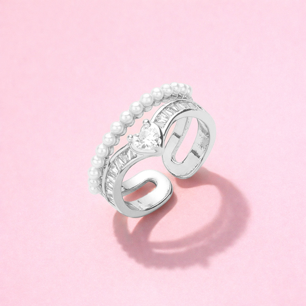 Details • Size : 0.4" H (size 7 only) • Statement open band ring designed with delicate pearl accents and a sparkling center stone for a refined, elegant look. Adjustable silhouette offers comfortable everyday wear or special occasion styling. A versatile fashion ring perfect for gifting and boutique jewelry collections seeking timeless charm. • Lead and Nickel Compliant