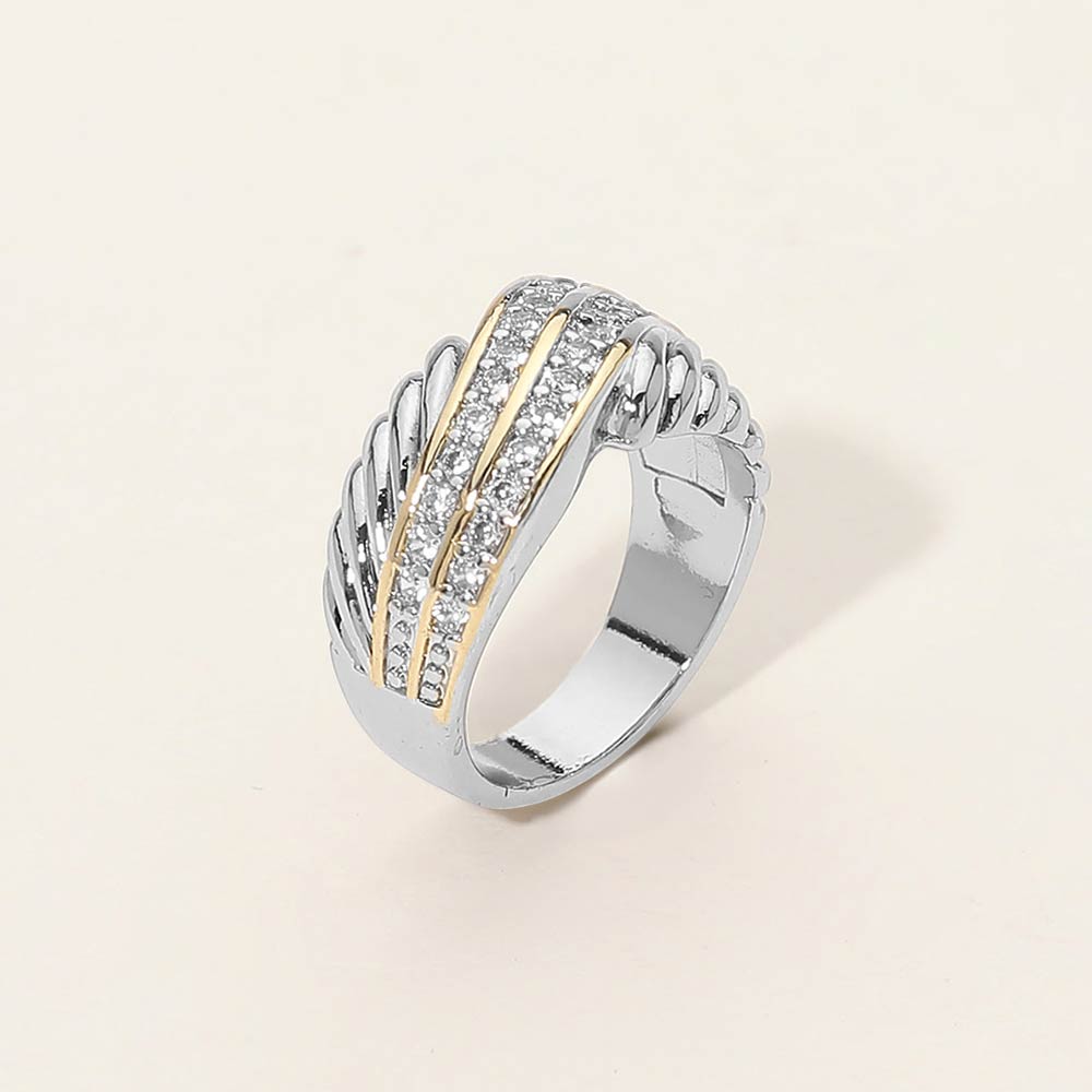 Two Tone CZ Stone Paved Double Stack Ring