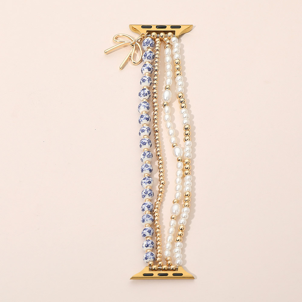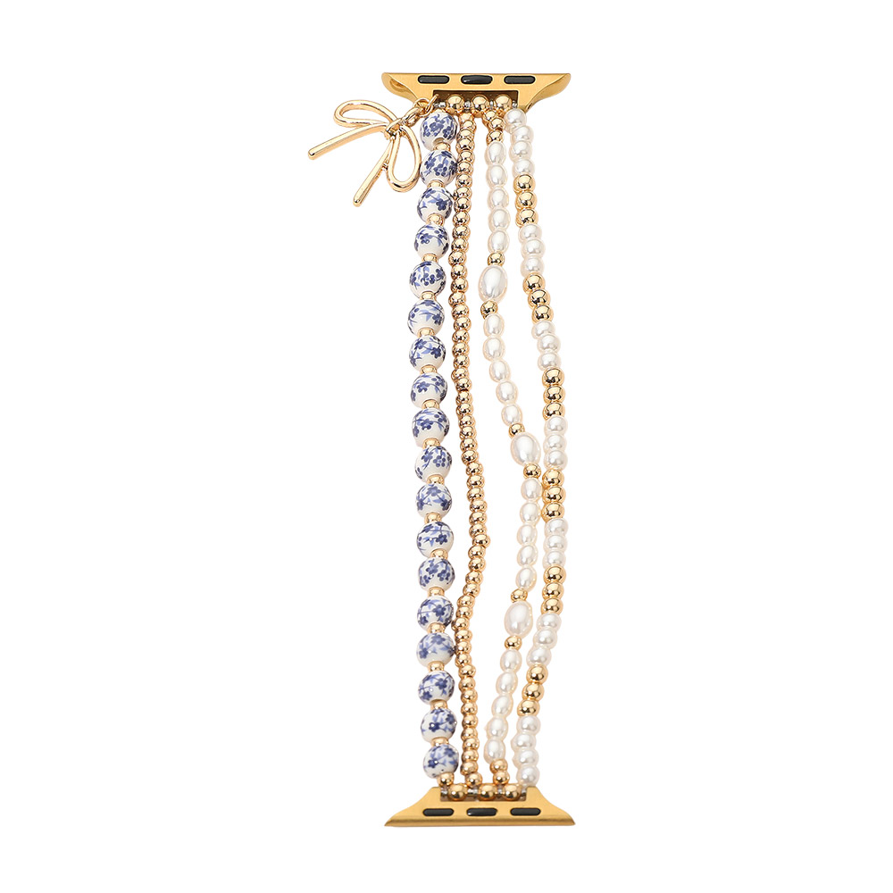 Bow Charm Dangle Floral Ceramic Ball Pearl Beaded Multi Layered Apple Watch Band