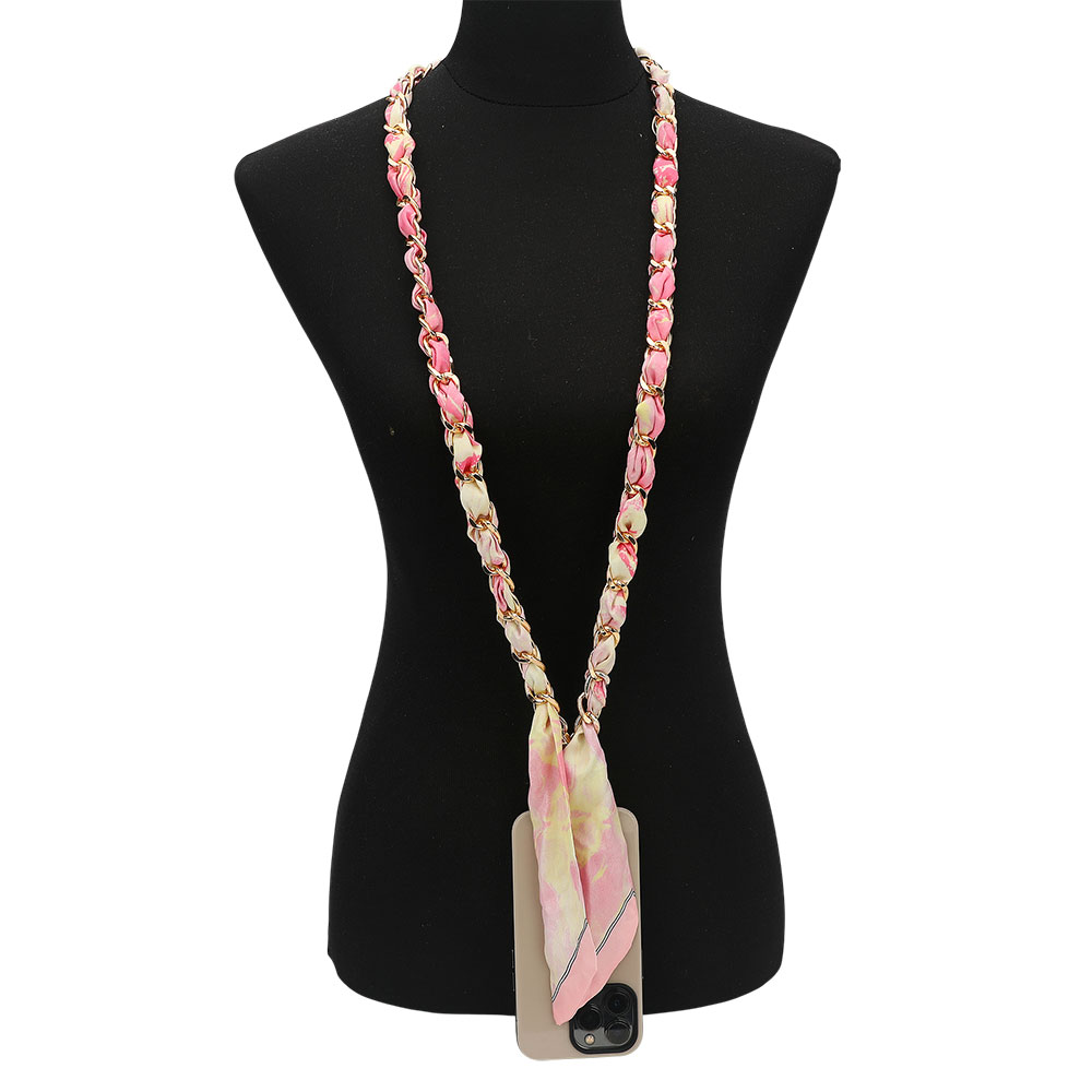 • Add a chic touch to your phone with this patterned scarf chain strap featuring an elegant border design and gold chain accents. Lightweight yet durable, it offers hands-free convenience and timeless style—perfect for elevating your everyday look or keeping essentials close in style.
