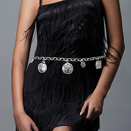 Chunky Boho Embossed Coin Flower Sand Dollar Medallion Charm Station Waist Chain Belt