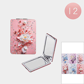 12PCS - Stainless Steel Stone Paved Flower Pendant Necklaces