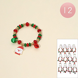 12PCS - Festive Santa Charm Faceted Beaded Stretch Bracelets