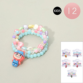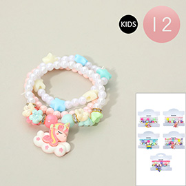 12 SET OF 3 - Kids Monster Bunny Charm Pearl Heart Faceted Beaded Stretch Multi Layered Bracelets
