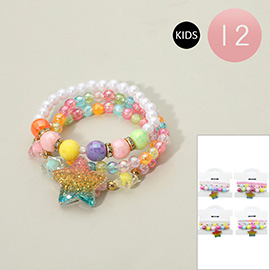12 SET OF 3 - Kids Star Charm Accent Pearl Beaded Stretch Multi Layered Bracelets