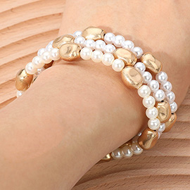 3PCS - Irregular Pearl Beaded Stretch Multi Layered Bracelets