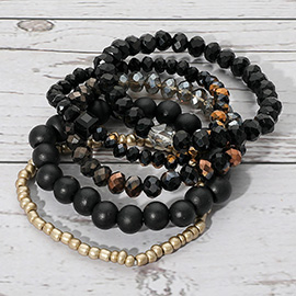 5PCS -Round Ball Curved Textured Bar Beaded Stretch Multi Layered Bracelets Quick Shop