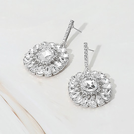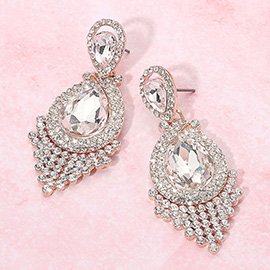 Rhinestone Paved Flower Fringe Evening Earrings